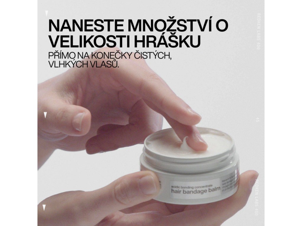 Balzám na vlasy Redken ABC Hair Bandage Balm aplikujte do čistých, vlhkých délek vlasů a na konečky. Poté vlasy upravte běžným způsobem.