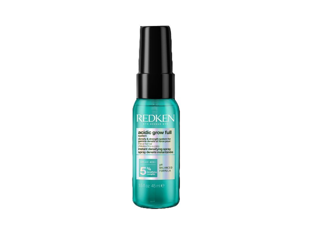 Komplexní sprej pro okamžité zahuštění vlasů Redken Acidic Grow dodává vlasům objem od kořínků až po konečky bez zbytečného zatížení. Díky složení s kyselinou azelaovou a 5 % komplexu pro zahuštění vlasů tak bude vaše hříva vypadat hustší a plnější. Společně s vyrovnaným pH se navíc kromě objemu postará i o její ochranu během stylingu až do 230 °C.