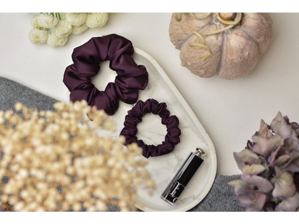 Hedvábné gumičky v MULBERRY MIST tmavě fialové barvě.