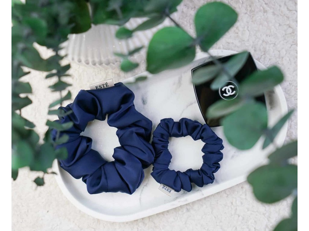 Hedvábné gumičky v BERRY BLUE tmavě modré barvě.