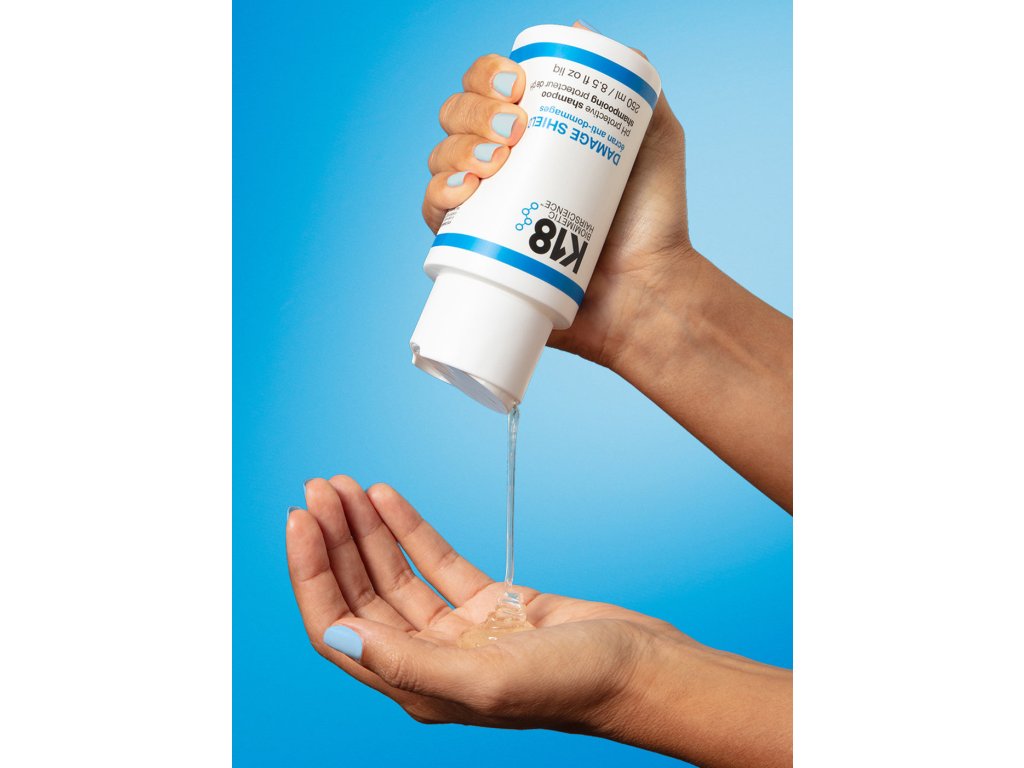 - Pokud často používáte stylingové produkty nebo suchý šampon, použijte hloubkově čisticí šampon K18 Peptide PrepTM Detox Shampoo.