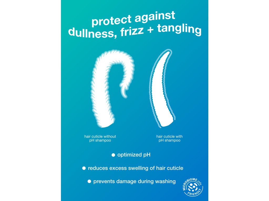 Optimální pH zachovává uzavřenou kutikulu během mytí, čímž udržuje přirozenou úroveň hydratace a hladké vlasy.