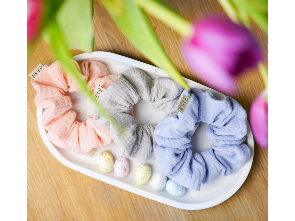 Mušelínová gumička ve světle šedé CLOUD barvě.